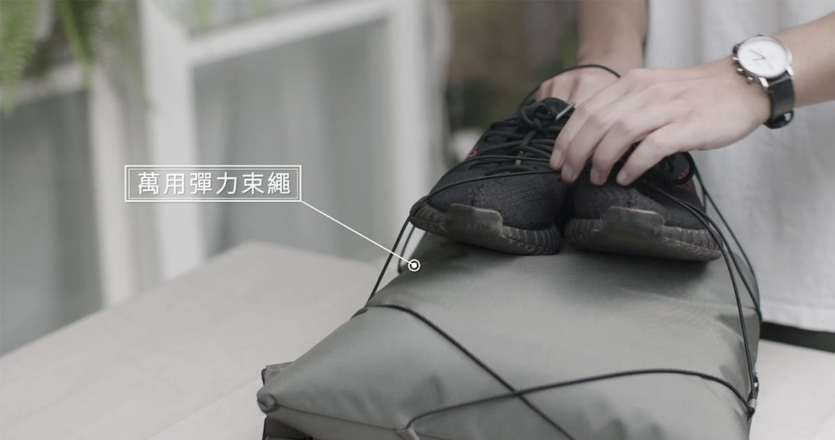 可拆式的萬用彈力束繩讓許多大型的生活器具變得容易攜帶,並豐富了背包功能的多元性,尤其對於一些熱愛戶外生活、登山或是攝影的朋友們更是重要!
