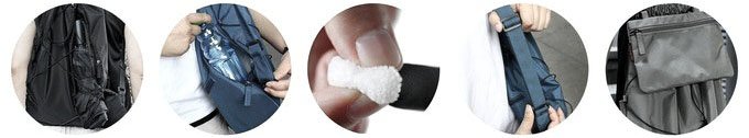 1.「功能強大」>> 滿足通勤、運動、洽公、休閒各種活動的機能需求 2.「外型時尚」>> 風格簡約時尚、功能設計淺顯易懂 3.「背負舒適」>> 厚實的肩背帶設計提升背負舒適感與服貼度 4.「好收納」>> 內外獨立夾層設計,讓空間收納更具條理 5.「兼容性高」>> 肩帶長度必須是可調式以適合各種身高體型 6.「耐刮輕盈」>> 高強度布料且材質輕盈耐用 7.「好清洗」>> 布料必須防水防沙好清洗 8.「容量大」>> 收納空間容量加大 9.「機動性」>> 內附可拆式小內袋